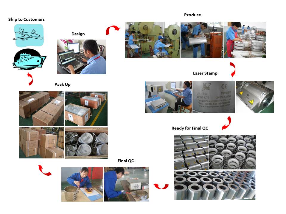 Different plastic particles have different features, e.g. some are more sensitive to temperature which requires better controls on temperature while heating. Thus, air cooling heaters are designed for this type of plastic particles. The air blower connected with the heater can help cooling the heated object while it is being heated. When the temperature exceeds a certain degree, the air blower starts to work. In this way, the temperature of plastic particles can always be controlled within a certain range. Otherwise, the plastic products made are likely to have defector even cannot be formed.