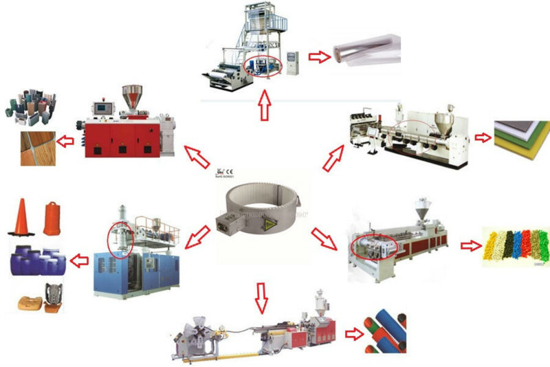 主要適用于擠壓、澆鑄和下沖式機(jī)械。操作溫度可達(dá)到550℃,最大表面負(fù)載8w/㎝2,特點(diǎn)是加熱速度快、熱利用率高、節(jié)能顯著(能量消耗降低30%)、抗高溫蠕變、壽命長、耐高溫、絕緣性高,是目前塑料擠出機(jī)械、塑料注射成型機(jī)械、塑料中空機(jī)械、塑料吹膜機(jī)械、化纖機(jī)械最適用的電加熱器之一。