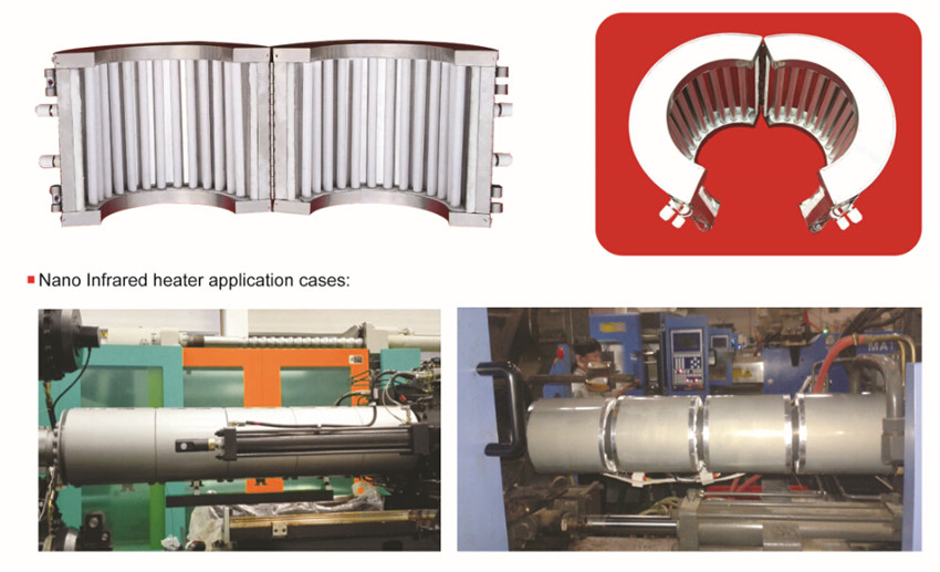 Инфракрасный обогреватель Nano генерирует высокой тепло, высоким сопротивлением провода, отражающие, кварцево-галогенные, Отопление трубы. Она имеет высокий тепловой КПД, отличный эффект экономии энергии и температура поверхности довольно низким нагреватель. После индукционного нагрева, это еще один высокий Отопление энергосберегающая технология, которая сейчас широко используется в пластиковых машин.